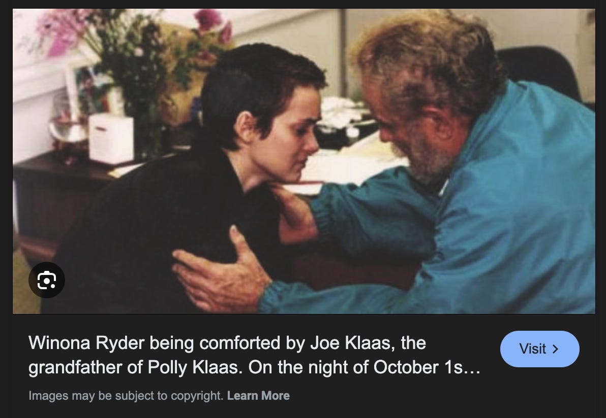 “Winona Ryder being comforted by Joe Klaas, grandfather of Polly Klaas” (Wtf)