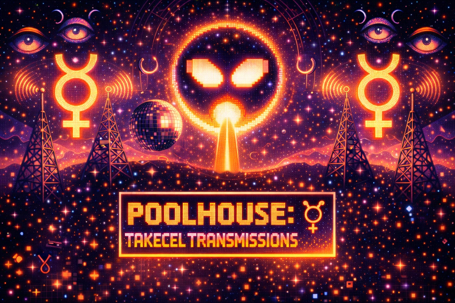 Tonight’s transmission is a day-glo mindbeam across a neon dream nightscape from the Starship Backlash. The timeline is awash in cops and slop, high as hell on its own supply of opaque cashflow and doomsday clown-machine energy. When the future becomes just another rug-pull flop asset, Poolie’s answer is new rhythms. When they put you in the crystal, Poolie’s answer is to turn it into a subterranean discotheque.