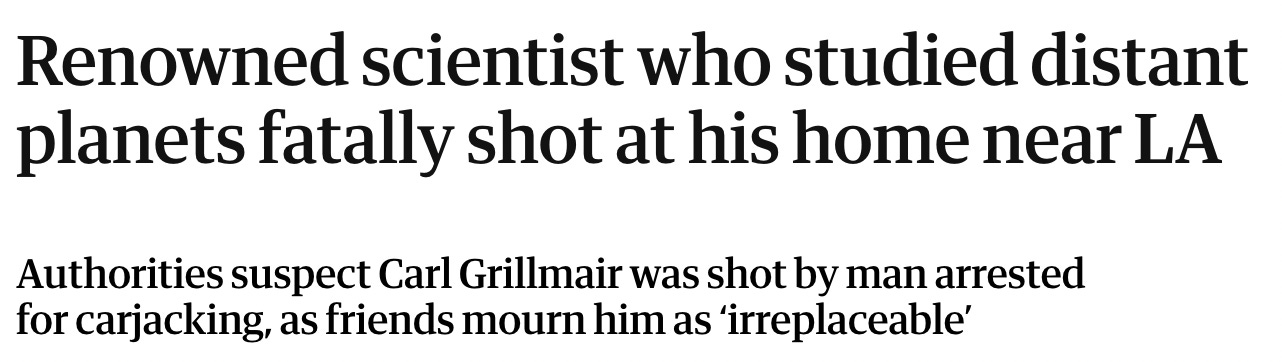 RENOWNED SCIENTISTS WHO STUDIED DISTANT PLANETS FATALLY SHOT AT HIS HOME NEAR LA (THE GUARDIAN)